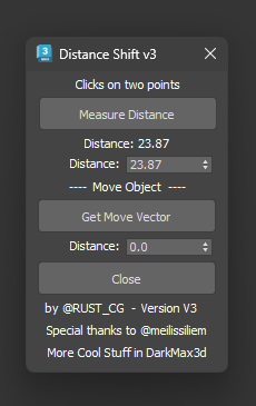 Installation, drag to 3dsmax, after installation, pull out the button or assign a hotkey to the Distance Shift in the RUST Script category